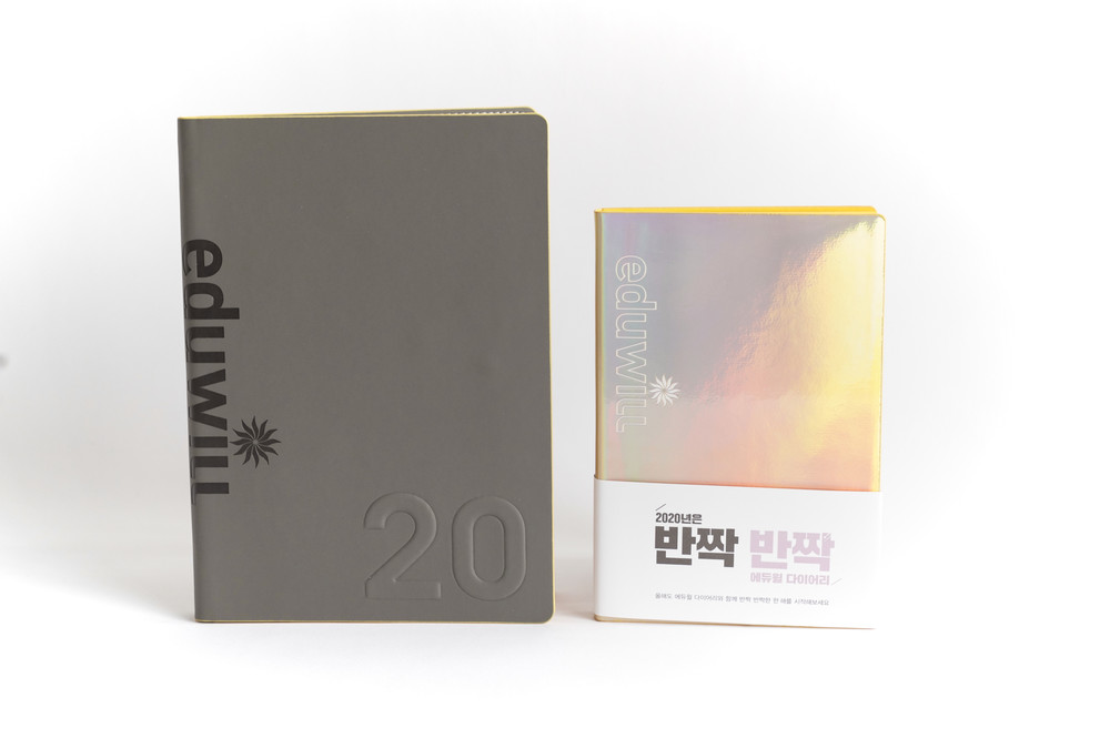 * 특이사항 : 인쇄전용PU에 에듀윌 패턴인쇄// 내포켓과 엣지컬러를 노랑색으로 포인트/ 밴드,가름끈 노랑색 염색/ 양장과 세트 / 2018.2019.2020.2021