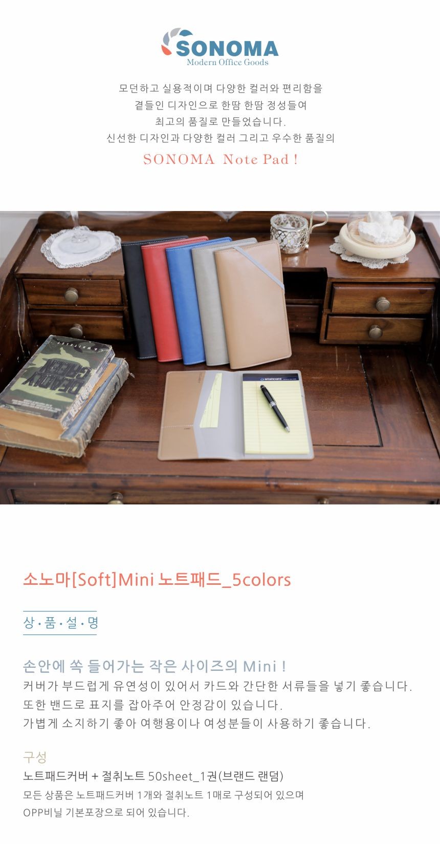 SONOMA소노마[Soft]Mini노트패드_5colors